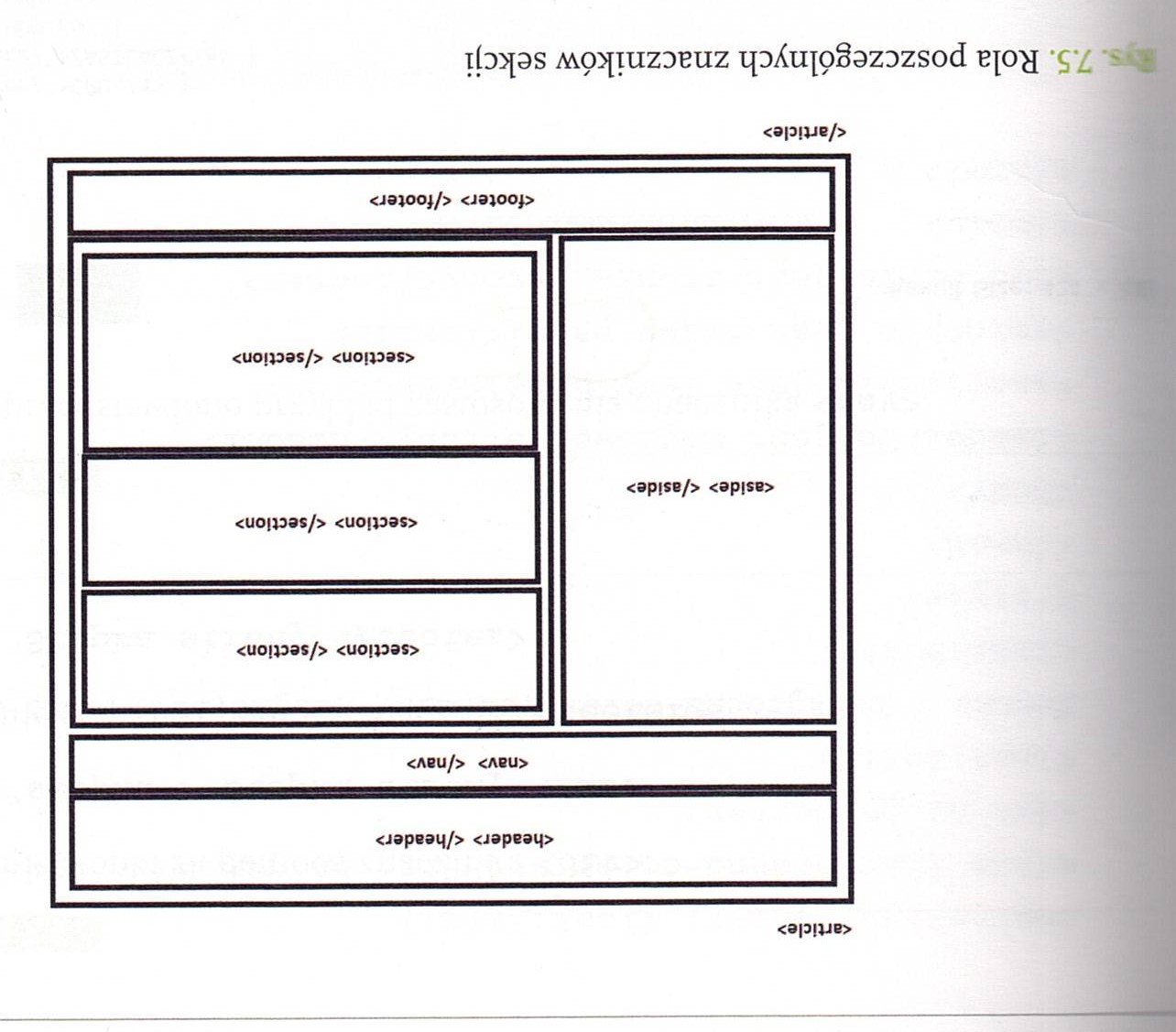 Wraz z opublikowaniem specyfikacji HTML5 wprowadzono nowe elementy blokowe, które mają zastąpić znacznik <div>...</div>, np. <article>, <header>, <nav>, <section>, <aside>, <footer>.