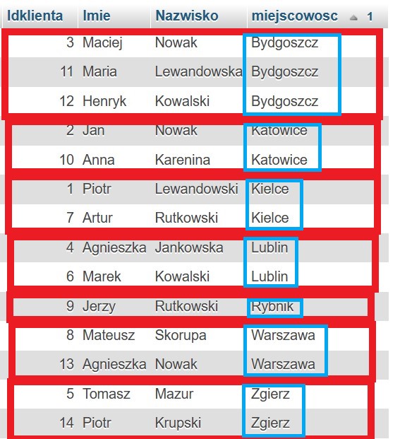 Do jednej grupy należą te rekordy, dla których tzw. wyrażenie grupujące zwraca tą samą wartość.