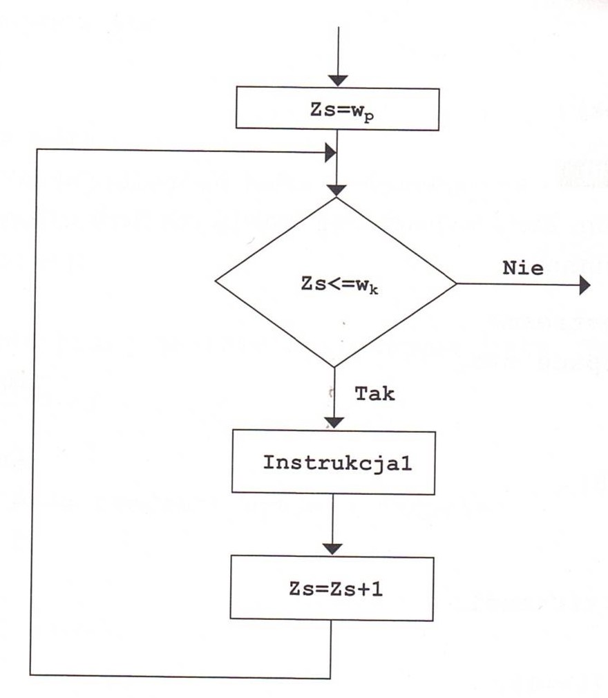 zs - zmienna sterująca pętlą wp - wartość początkowa wk - wartość końcowa