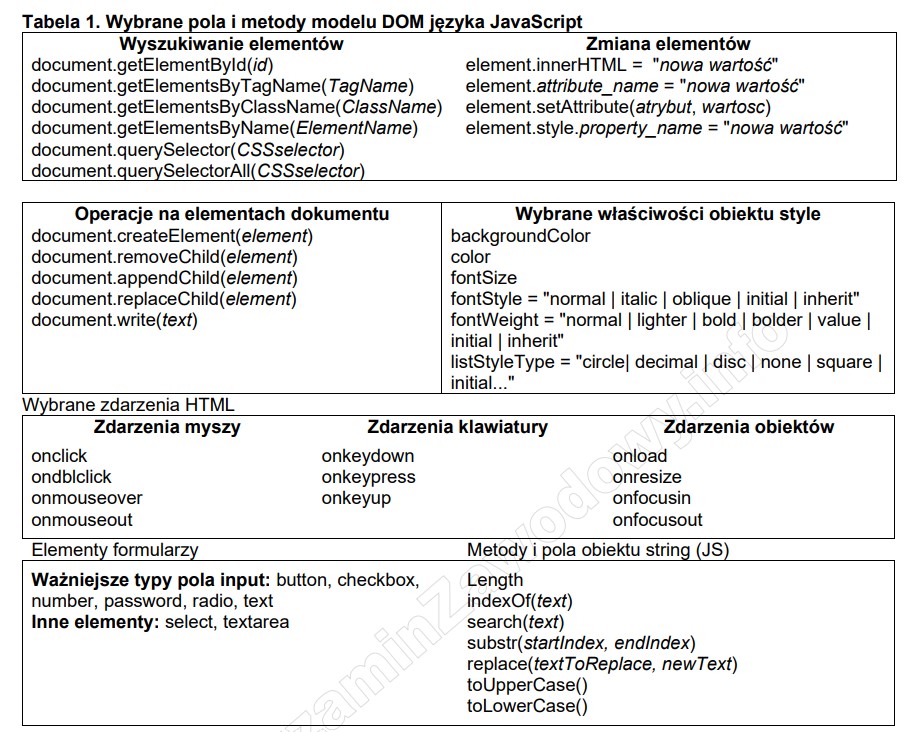 Wybrane pola i metody modelu DOM